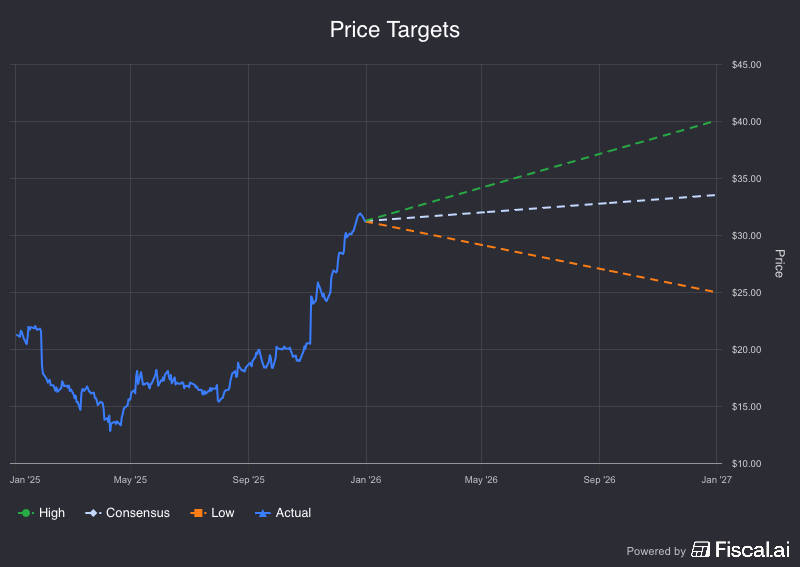 Operating margin & EBITDA: We will see a robust expansion here. Based on Piper Sandler and UBS targets, we will see 10% EBITDA CAGR moving forward. By 2029, forecasted EBITDA margins expanding to 33.0% (up from 27.5% in 2025).