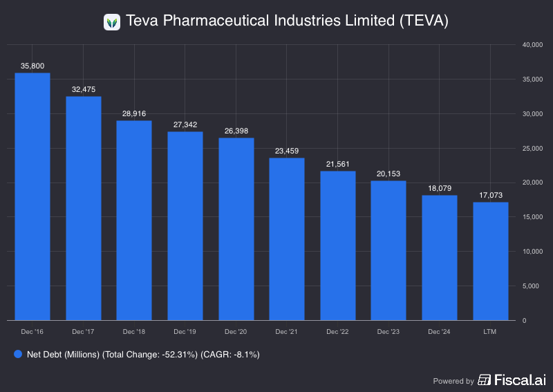 The trend is clear, Teva is very diligently brining down debt and this will continue at least until it is down to 2x Net debt to EBITDA.